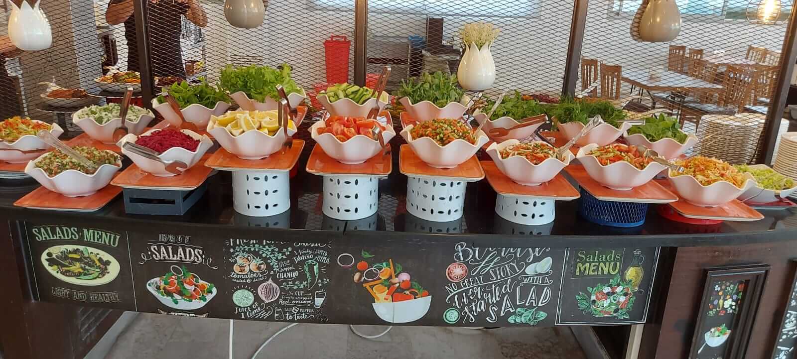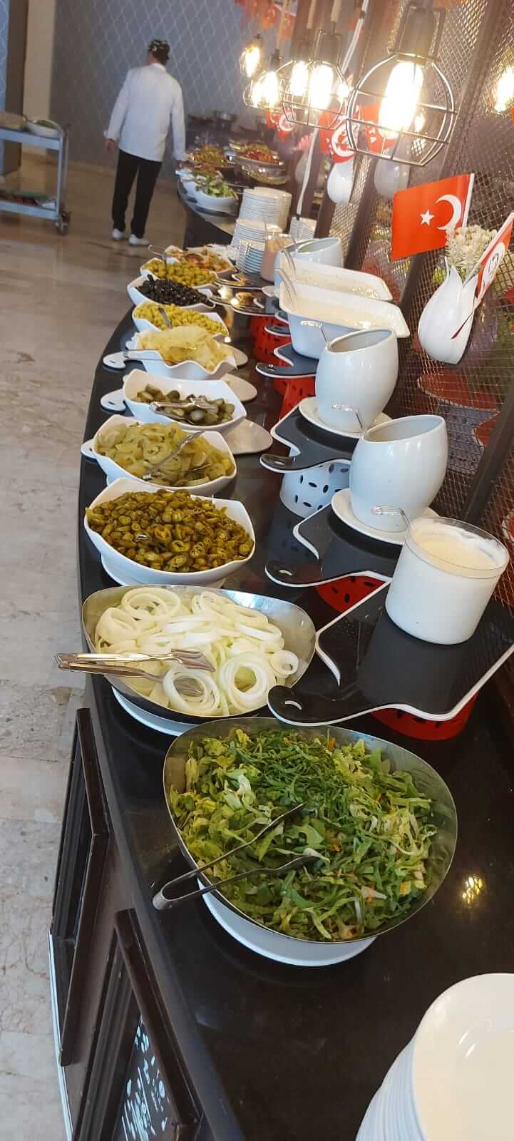 Sabah kahvaltısı, öğle ve akşam yemekleri açık büfe olup tesisin belirlemiş olduğu markalar dahilinde 10:00 ile 24:00 saatleri arasında yerli içecekler ücretsizdir. Taze sıkılmış meyve suları, tüm yabancı ve import içkiler, Türk kahvesi ücretlidir.